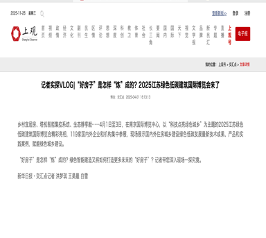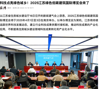澎湃新闻—科技点亮绿色城乡!2025江苏绿色低碳建筑国际博览会来了