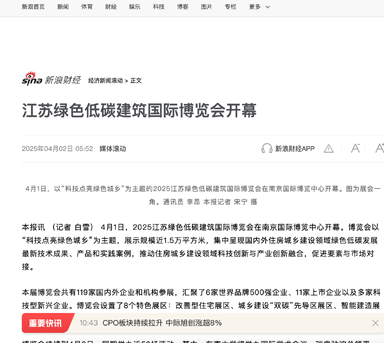 新浪财经—江苏绿色低碳建筑国际博览会开幕