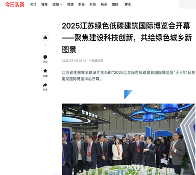 今日头条—2025江苏绿色低碳建筑国际博览会开幕——聚焦建设科技创新,共绘绿色城乡新图景