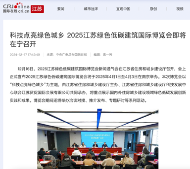 国际在线——科技点亮绿色城乡 2025江苏绿色低碳建筑国际博览会即将在宁召开