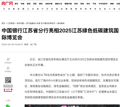 央广网——中国银行江苏省分行亮相2025江苏绿色低碳建筑国际博览会
