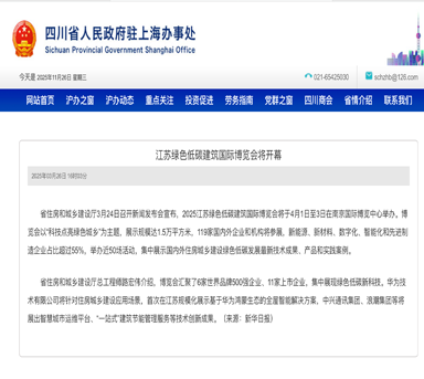 四川省人民政府驻上海办事处—江苏绿色低碳建筑国际博览会将开幕