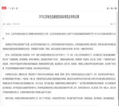 江南晓报—2025江苏绿色低碳建筑国际博览会即将启幕