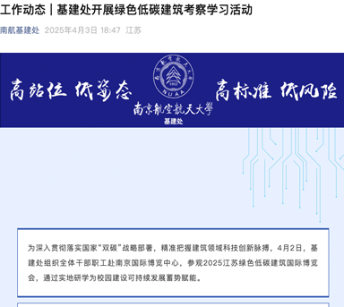 南航基建处—开展绿色低碳建筑考察学习活动参观2025江苏绿色低碳建筑国际博览会