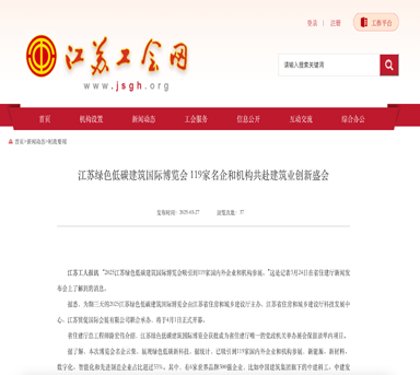 江苏工会网—江苏绿色低碳建筑国际博览会 119家名企和机构共赴建筑业创新盛会